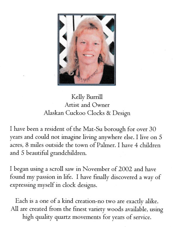 Creating Alaska's finest hand scroll sawed clocks.