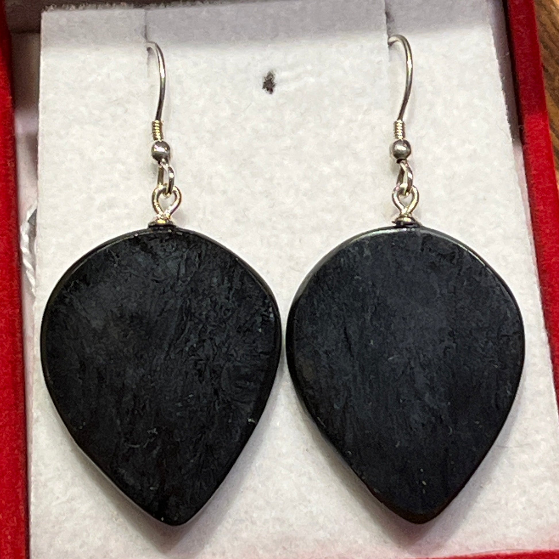 Alaskan Black Jade guitar pic earrings in sterling silver